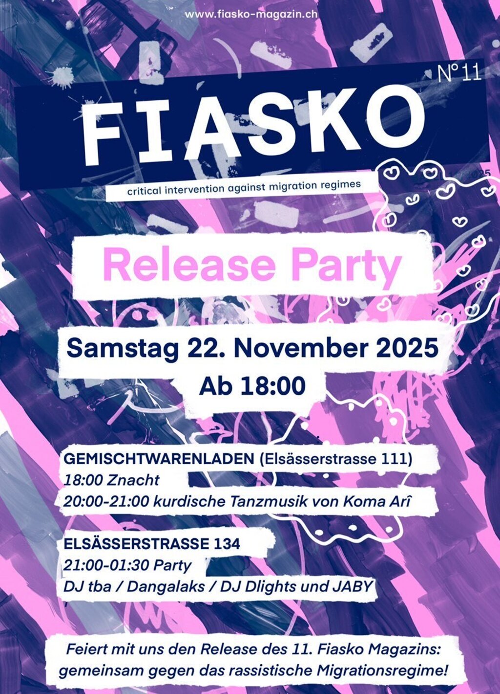 Wir feiern den Release der 11. Ausgabe des Fiasko Magazins. Mit Abendessen, kurdischer Tanzmusik, DJs und natürlich dem frisch gedruckten Magazin!