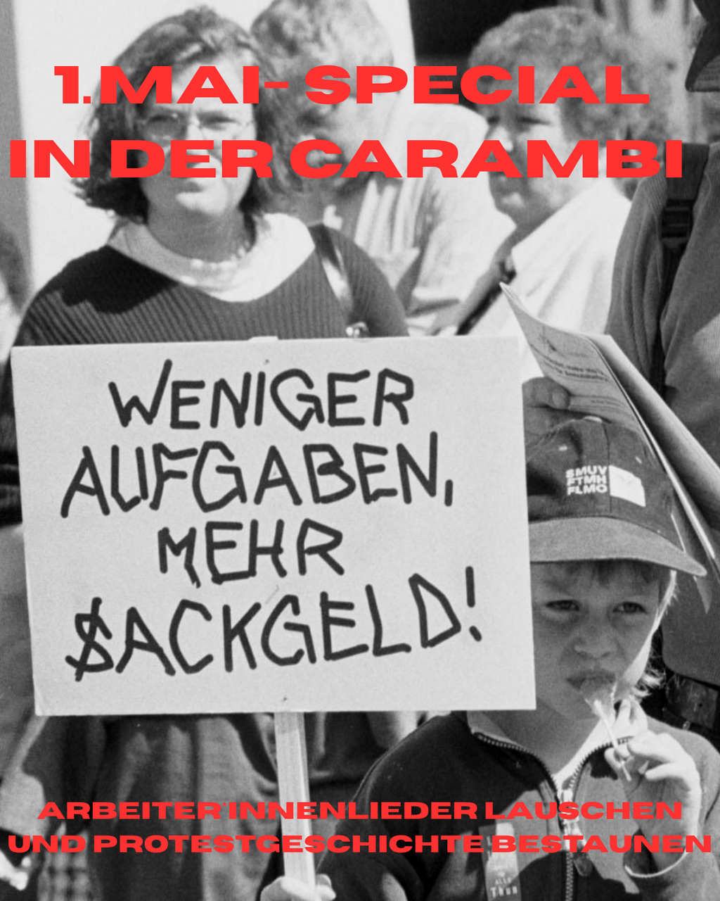 Komm nach der Demo auf ein Erfrischungsgetränk. Wir hören den ganzen Abend Arbeiter*innenlieder: zum mitgrölen und lauschen, zum plaudern und rauchen. Ausserdem Videos und Bilder von vergangenen 1.Mai-Demos (stumm, als Deko an die Wand projiziert).
