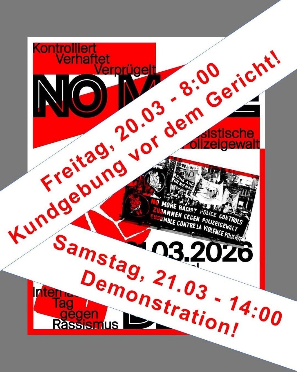 Die Gerichtsverhandlungen am 20. / 24. / 25. März sind öffentlich. Wir sind als NO MORE Komitee jeweils dabei. Es wäre super, wenn sich weitere solidarische Menschen anschliessen. Meldet euch am 20.03. um 8 Uhr vor dem Gericht bei uns. Oder schreibt uns👇🏾, damit wir uns absprechen und euch die Zeiten für die beiden anderen Tage sagen können.