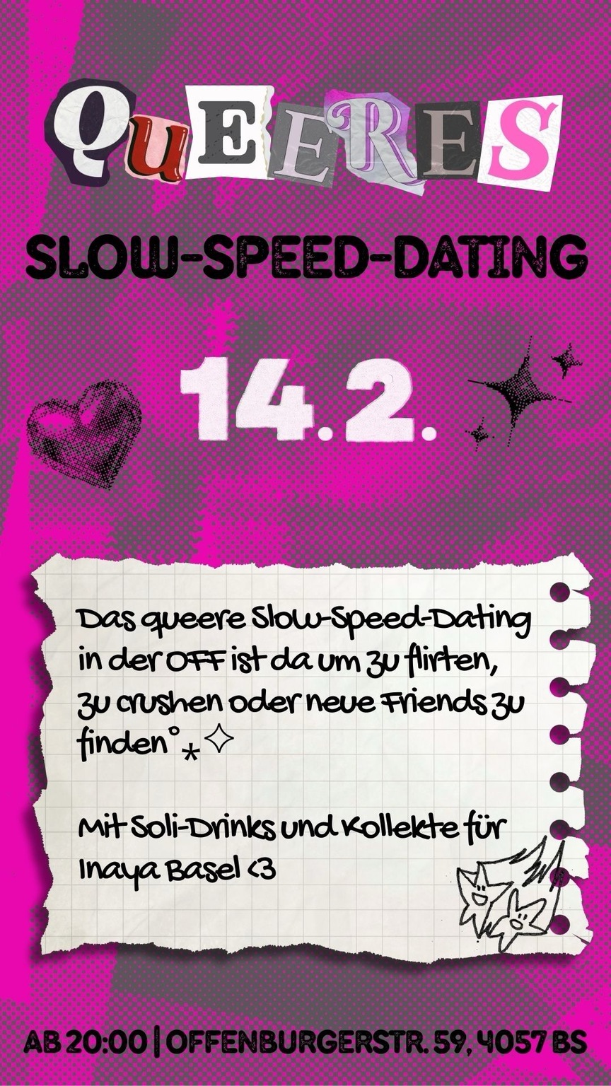Das queere Slow-Speed-Dating in der OFF ist da um zu flirten, zu crushen oder neue Friends zu finden˚⁎✧⠀