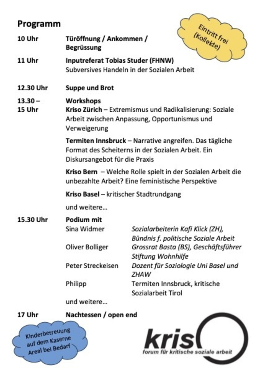 Anmeldung erwünscht an basel@kriso.ch