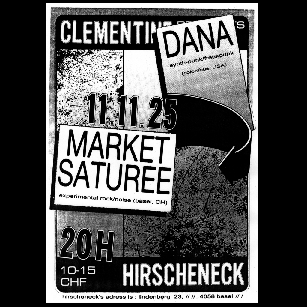 market saturee ist ein Improvisations-/Jazzrock-Trio aus Basel. Es ist groovig und zum Tanzen gemacht, aber der Sound wechselt schnell – von dichten Drones über zerklüftete Melancholie bis hin zu purer mechanischer Kraft.