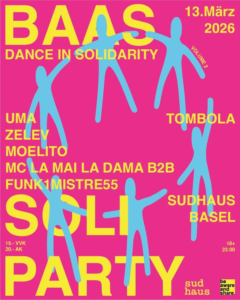 Dich erwartet eine Nacht voller Solidarität & guter Gesellschaft, eine Tombola mit grossartigen Preisen und Musik, die zum Feiern einlädt: