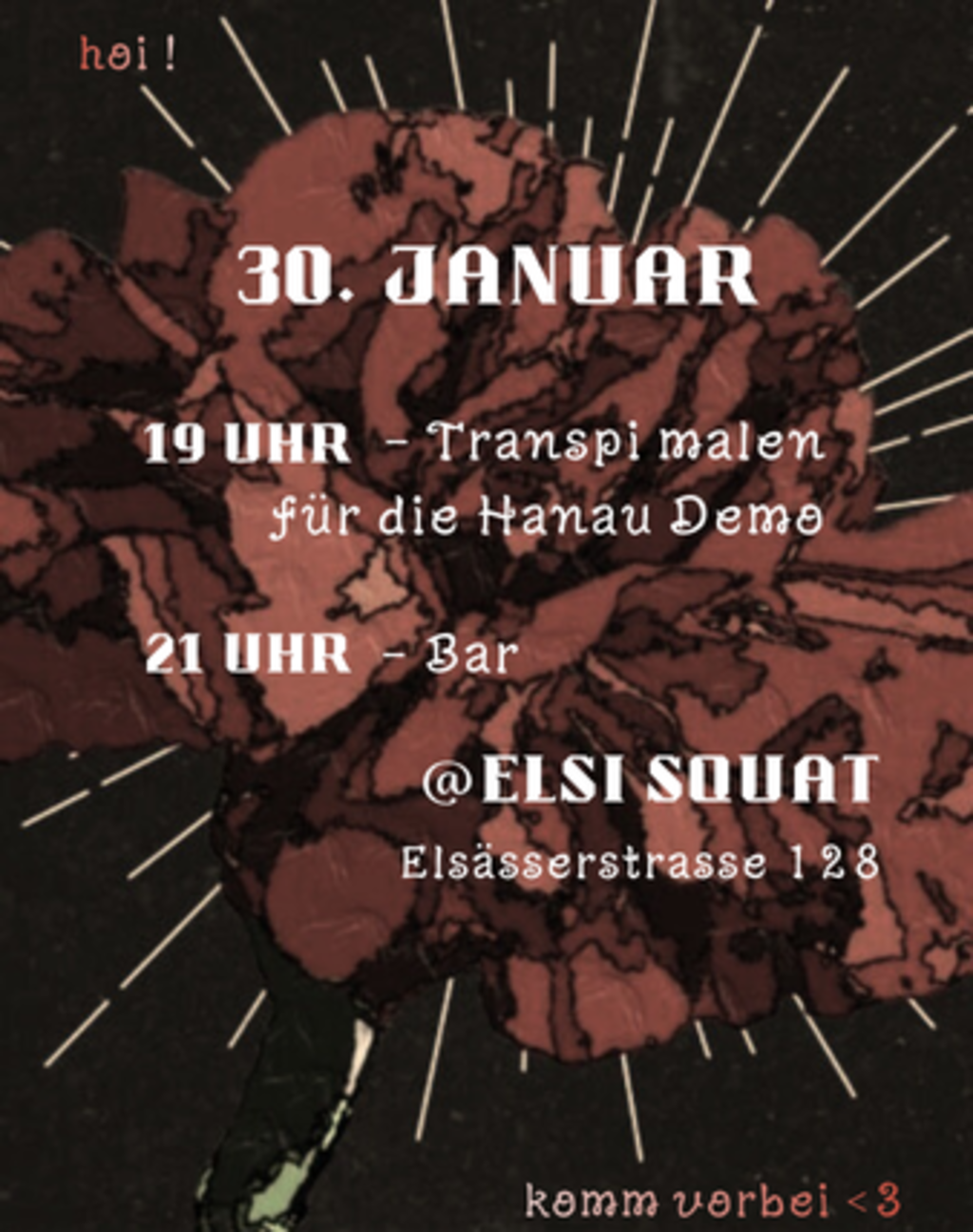 Wann? Fr, 30.01 19 Uhr Transpi malen // ab 21 Uhr Bar